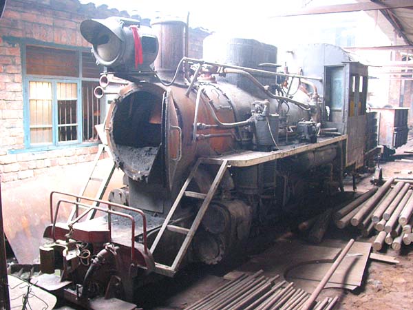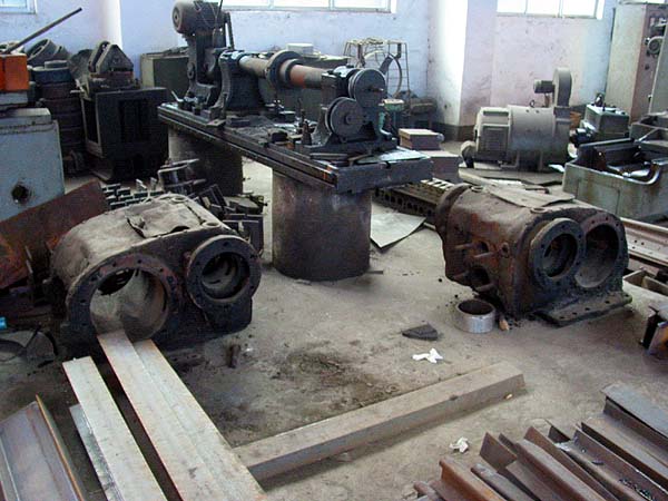 We visited the main workshop north of Shixi station, a newly rebuilt facility which builds skips for outside mines as well as providing facilities for the company's mine and railway. This is a spare pair of cylinders sent for machining: