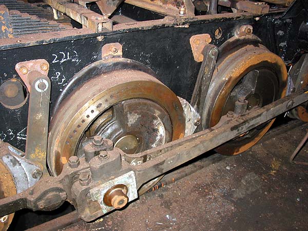 Basically they are both still in 'as withdrawn' condition and they will be overhauled as time allows. There are obvious external differences from the original Shibanxi locomotives including the provision of air brakes and generator. The pictures below show parts of the motions. One issue which may or may not be significant is the addition of replaceable soft cast iron plates inside the driving wheels of Shibanxi locomotives compared to standard C2 practice; this avoids damage to wheels or frames when rounding corners. I didn't have time to check, but from these pictures (and the angle of mounting of the steam pipes) the Pengzhou locomotives may have a slightly longer wheel base.: