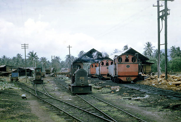 A general view in August 1969 of the shed at Sura for the 762mm (2ft 6in) gauge railway for Eastern Mining and Metals Company (EMMCO). This was some 32km long and used to carry iron ore from Bukit Besi to the port here at Sura on the outskirts of Kuala Dungun. (PH) |