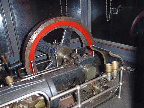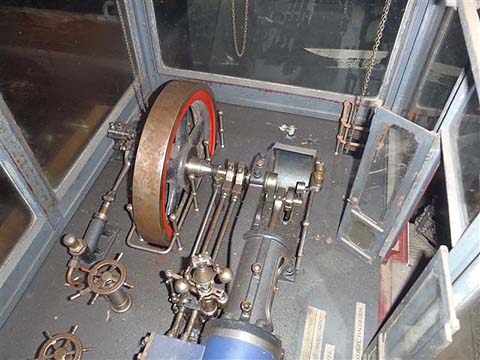This is a large tandem compound horizontal stationary engine by Van Den Kerchove of Gent. They were the main builder of stationary steam in Belgium. This engine was built in 1921 and came from a textile mill, ”Weverijen van Themssche” in Sint Amandsberg. Unfortunately, the museum has no boiler, but it can be turned over slowly with an electric motor on the turning gear.