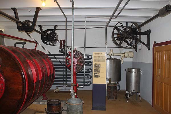 The pictures below from Thomas Kautzor show the Freia Kaas en Roomboterfabriek at the Nederlandse Openluchtmuseum (NOM) in Arnhem (http://www.openluchtmuseum.nl/). Coal is brought from the coal shed to the boiler by Decauville railway. The boiler is used to power the stationary steam engine, which in turn powers the cheese-making devices via a belt and line shaft system. The cheese is on sale at the site. The plate on the steam engine reads "TH. HOLTHUIS - MACHINENFABRIEK - VEENDAM"; Theodorus Hendrikus Holthuis was the founder of a firm now known as Nivoba and still involved in machinery for food production.