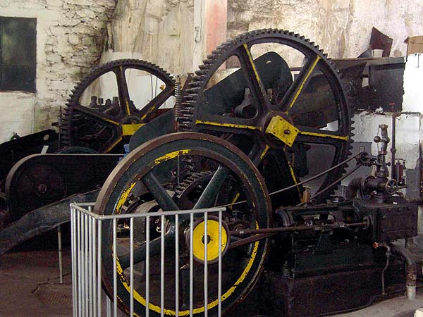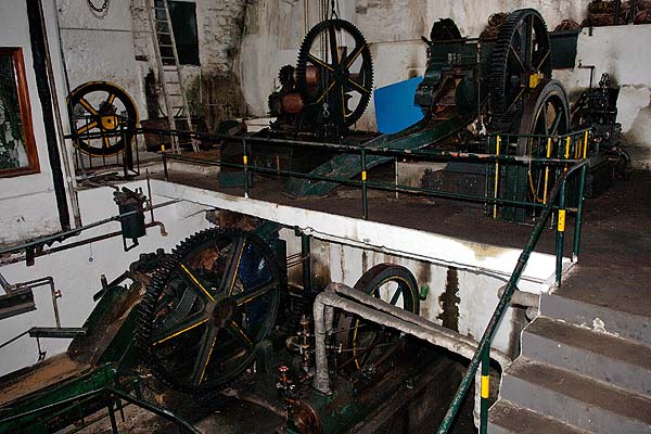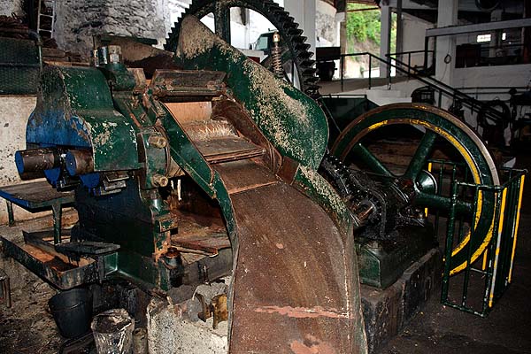 The factory was not working at the time of our visit (mid-Jan 2007) but guessing at the sugar season, it may work a short season every spring. This factory is in several guide books and may be the most authentic of the original plants. However, there are at least 3 more to be explored. You can freely wander around but the free rum samples mentioned in the guide books were not on offer although there was a pay bar. Searching the web I found more pictures on http://www.madeiraarchipelago.com (site dead in October 2013) from which the following are reproduced under their terms of use.. This is the mill John visited: