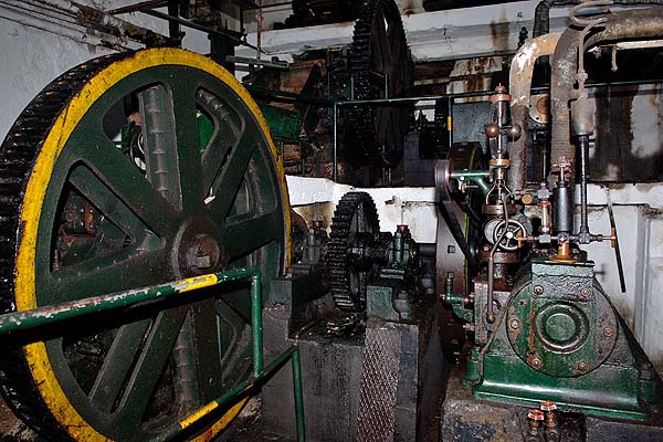 The engine on the left has been converted to electric with a motor attached. This appears on the base of the milling equipment (agents I suspect).