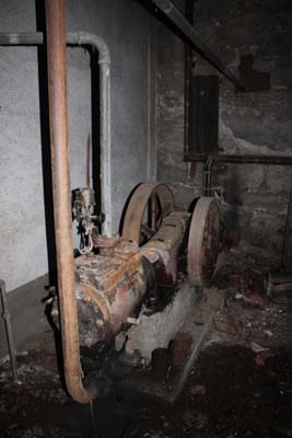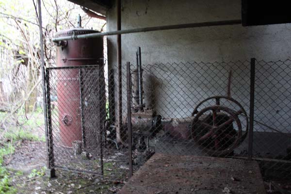 Finally, despite appearances this is not an engine but an air compressor, it would have been driven by a belt. It was made by Ingersoll-Rand of New York and is found in Darque.