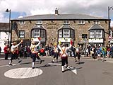 This is one of a series of pages I have uploaded to illustrate facets of the steam rallies we have attended in the UK. Click here for the 2017 introduction and overall index. On the last Saturday of April each year, the good people of Camborne come together to have a giant street party to celebrate the town's most famous son, Richard Trevithick. Naturally steam engines are the centre piece and after being on show during the day, they parade round the town in the afternoon. We also made time to visit the classic gardens at Glendurgan. The non-steam section is covered in the Camborne Fun link below. This was the scene at Carn Brea as the engines gathered for a collective road run into town.