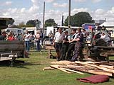 An appropriately dressed gang sawed up a large supply of medium sized trees...