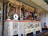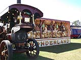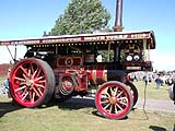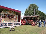 This is one of a series of pages which I have uploaded to illustrate facets of steam rallies we have attended in the UK. Such events occur all over the country in the summer months, they are easily found by using your favourite search engine and may have anything between a handful of steam engines and hundreds (as at the Great Dorset Steam Fair which could probably be fairly described as having an excess of riches). Click here for the Lincoln index and click here for the overall index. By working engines, I mean steam engines which did more than sit looking beautiful or amble round the main arena to have their pictures taken. We had just one day at this large show but fortunately the weather was kind. Like South Cerney on the old air field, Lincoln is held on a permanent show ground so steam ploughing is out of the question. A particular feature at Lincoln is the number of showman's engines which are used to generate electricity to power mechanical organs.