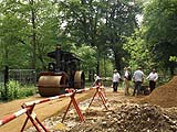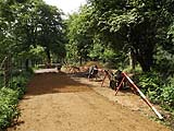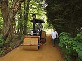 This is one of a series of pages which I have uploaded to illustrate facets of steam rallies we have attended in the UK (since 2013). Such events occur all over the country in the summer months, they are easily found by using your favourite search engine and may have anything between a handful of steam engines and hundreds (as at the Great Dorset Steam Fair which could probably be fairly described as having an excess of riches). Click here for the Fawley Hill index and click here for the overall 2016 index. There was much more to this steam rally than road engines... These were the same as in 2014. The "Vintage Road Making Team" I have seen regularly at the Welland Steam Rally were in attendance improving a track through the Fawley Hill estate. Burrell 3917/1921 was coupled up to an Allchin saw bench although I didn't manage to catch it at work. |