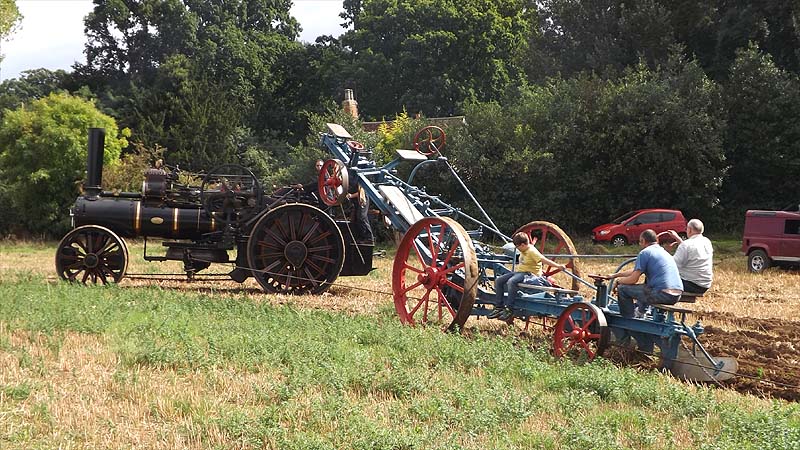 Steam Ploughing Steam ploughing was again on offer. I made a brief visit to the field by the car park where Sunrise and Sunset (Fowler 14247/14248 of 1915) were working with a 6 furrow Fowler anti-balance plough.