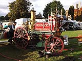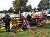 This is one of a series of pages which I have uploaded to illustrate facets of steam rallies we have attended in the UK. Such events occur all over the country in the summer months, they are easily found by using your favourite search engine and may have anything between a handful of steam engines and hundreds (as at the Great Dorset Steam Fair which could probably be fairly described as having an excess of riches). Click here for the Old Warden index and click here for the overall 2016 index. By working engines, I mean steam engines which did more than sit looking beautiful or amble round the main arena to have their pictures taken. To these engines should be added the many showman's engines which were generating electricity for the rides. Click here for a video clip which includes the sawing, threshing, steam yachts and the Shand Mason fire engine. The SteamScenes links for these engines appear on the individual engine type pages. The fire engine is Shand Mason (1456/1876) running with a replacement pump after the original was stolen in 2015. The smaller pump is a Merryweather (8600/1944) similar to that at Fawley Hill. Both pumps were servicing the road engines which would drop by from time to time for a fill up: