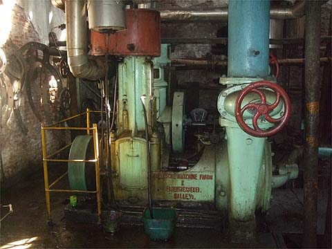 There are three air compressors here, two are mirror image Halle engines (first row, left and right) normally in use, the other (second right) is rather different, it may be a Stork: