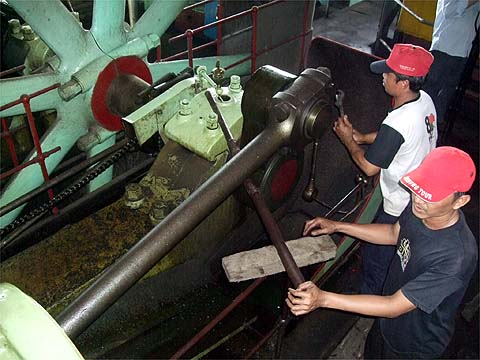 Alas the recent rain meant that there was insufficient cane at Tulangan and the mill was stopped. It was not a total disaster as the back end of the factory was running including the vacuum pumps and the staff had grabbed the opportunity to do some essential maintenance. There are five milling engines here, the first and third are unusual in that they have Werkspoor built Meier-Mattern hydraulic valves. The coverage below is a composite from both: