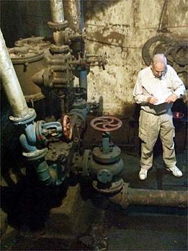 Two unidentified duplex pumps remain active, the smaller one is under the evaporators, the larger one is near the vacuum pumps where it is used to pump the mill's water supply from a nearby stream: