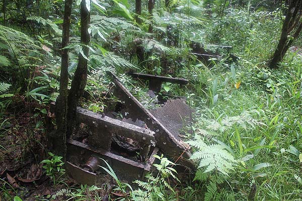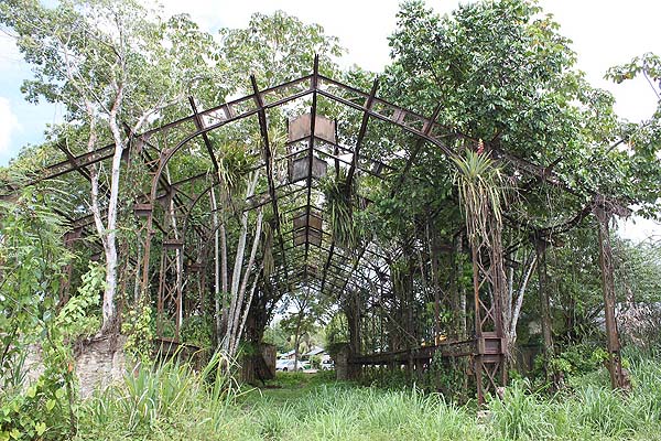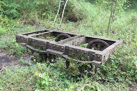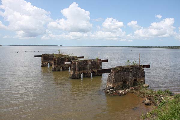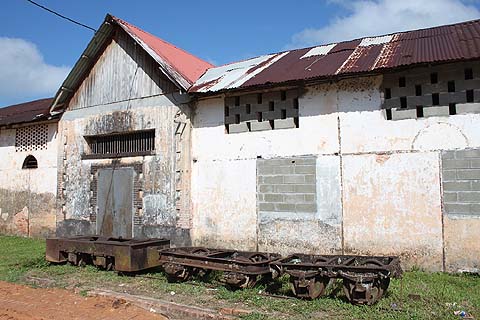 The Camp de la Relégation in St-Jean is presently used as a base camp for a detachment of the French Army’s Cayenne-based 9th Marine Infantry Regiment (9e RIMa), who patrol the border with Suriname. A few years ago, 6 km of light track were undug inside the camp. Much more might still be hidden in the jungle. When the St-Jean pier as built, a steam locomotive was pushed by bulldozer into the Maroni River. There have been attempts to retrieve it, the last time in June 2009 by archeologist divers, but it could not be found so far. A “train” is also said to be abandoned somewhere in the jungle near Godebert, on the way to Charvein, it is however difficult to find out what is meant by that: a loco, a loco and wagons, wagons, a wagon, a length of track?