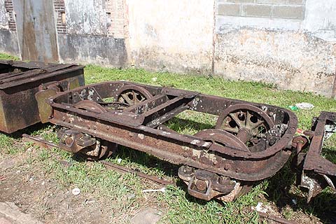At St-Jean, the frame of a four-wheel Jung diesel loco (thought to be a long-framed type EL105, EL110 or ZL114, built from 1937) is on display together with two bogies.