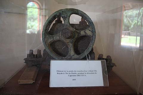 supplies for the prisoners and their guards. On Ile Royale, the masonry brick tower is still in place, as is the winch on Devil’s Island. A pulley is on display in the small museum on Ile