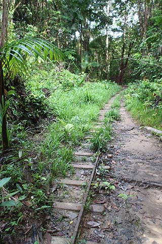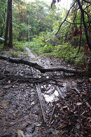 Although a “Café de la Gare”, which by the way serves excellent food, exists in Cayenne (42, av. Léopold Héder), none of the public railways projected for the colony were ever built (the restaurant and bar is so-called because the owner believed that every major town in France should have a railway buffet).