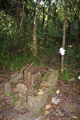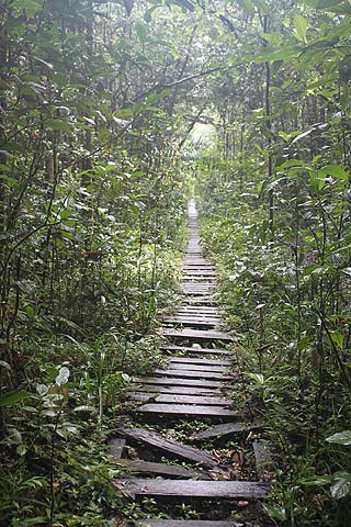 hour's walk along a footpath and the creek was a popular weekend destination for people from Cayenne, but the site was abandoned a few years ago. Currently, the municipality is developing a new and shorter footpath starting from the D5. We found remains of tracks,