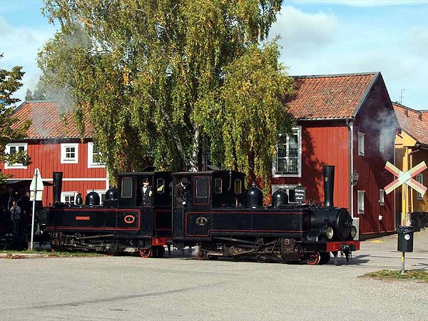James Waite reports on his 2009 visit. He was previously here in 2006 (the pictures are still available) but the original notes have been revised and updated. This 600 mm gauge line runs for a distance of 3.2 km between Läggesta Nedre and Mariefred, an old port town on the southern shore of Lake Mälaren, the large lake which extends from Stockholm westwards into central Sweden. Mariefred is a delightful town with many historical buildings including a wooden town hall and a sturdy stone church. It is dominated by Gripsholm Castle, a historically important baroque building dating partly from the early 16th century still officially a royal palace, which has become a major tourist attraction. The railway is built on the trackbed of an old standard gauge branch line which connected Mariefred with the main line system at Läggesta. Originally opened in 1895, the branch closed in September 1964. The whole line from Mariefred to the junction just outside Läggesta station including the station buildings and surrounding area was then donated to the museum society now known as the “Östra Södermanlands Järnväg” (East Södermanland Railway). This was confirmed by a decision of the Swedish parliament on 24th November 1965. The society had been formed back in 1959 to preserve what was left of the country’s 600mm gauge railways and had operated on an old brickworks railway at Södertälje since 1959. It moved its operation to Mariefred soon afterwards. A fairly dense freight and passenger traffic on the standard gauge main line through Läggesta station continued unaltered until 1993 when construction began of a new high speed railway, now known as the Svealandsbanan. This was opened in 1997, replacing the old route, and now the museum society has the sole use of the original Läggesta station. This is now referred to as “Läggesta Nedre”, or Lower Läggesta. The new line from Stockholm is at a much higher level and crosses the west end of the old station site on a substantial viaduct. There’s a station on the new line at the end of the viaduct which is within comfortable walking distance of the narrow gauge. Both the original, attractive wooden station buildings at Läggesta Nedre and Mariefred have been restored to their original appearance. The society has an impressive collection of historic passenger and goods stock from all the seven old 600 mm gauge public railways which once ran in Sweden, including steam locos from four of them. There are also several other steam locos which were formerly in use on industrial lines. For many of us the star attraction has to be “Lessebo”, a Mallet locally built in 1891 following the design of the original Mallets built by Decauville for the Great Exhibition in Paris in 1889. The Decauville system had a major influence on the development of Sweden’s 600mm gauge railways; indeed two of the Paris Mallets were exported to the country when the Paris show ended and more were built in the following few years. By the early years of the twentieth century the shortcomings of the design had become apparent and most of them were replaced by more modern machines built in the country. “Lessebo” led a charmed life, continuing to serve the Kosta Lessebo Järnväg, its original railway, until the line closed in 1948. It then moved to the Munkedals Järnväg, a much busier and more progressive railway which had a temporary need for additional motive power until it was converted to standard gauge in 1954. Lessebo was then acquired by the Swedish NRM at Gavle. It’s now on loan to the OSlJ and first steamed here in 2009. Amazingly it still carries its original boiler, now well over 100 years old. Much of the stock has now been restored, most of it to a very high standard though there are a few unfortunate failings, notably no. 5, an OK 0-4-4-0 Mallet tank from an industrial line in the south east of the country. When it arrived in the early 1960’s it was in most respects a typical OK Mallet but over the years has been “Swedified”, a matter of regret now to many of the society’s members. No. 2, originally a standard OK 0-4-0WT has also undergone similar treatment. The narrow-gauge line leaves Läggesta in a north easterly direction, curves through a deep cutting the line emerges to run alongside the lake, past Marielund, a small station with a passing loop, and on to the outskirts of Mariefred. As the railway approaches the town there are glimpses of the castle to the right. Entering the large station yard the line passes the extensive engine and carriage shed and works complex on its left. There’s road access to a level crossing at the northern end of the cutting which is a good spot for photos in the afternoon. The main stretch near the lake is more difficult due to the reeds through which the line runs. There are lots of photo opportunities at each terminus. The railway also owns the old standard gauge route from Läggesta to Taxinge and work is currently under way to convert it to 600mm gauge. It’s rather more than 6km long and so the line’s length will effectively triple when the work is completed – expected in 2011 or 2012. This is an excellent railway run by friendly and helpful volunteers and on all my visits they have been more than willing to show me around behind the scenes. If you’re there don’t miss the bookshop tucked away behind the station cafe. It’s run by Kurt Moller whose knowledge of and enthusiasm for the Swedish narrow gauge knows no limits and is a veritable treasure trove of narrow gauge books, many of which have been out of print and hard to obtain for years. Kurt has also been very helpful in supplying much of the info in these notes. The railway holds several special events each year and if you’re planning a visit it’s worth checking their website at http://www.oslj.nu (bilingual Swedish/English) for details of them. A pretty regular fixture is the end-of-season steam up on the last Saturday of Septem