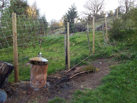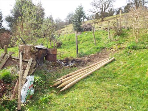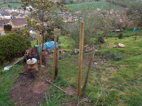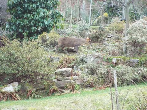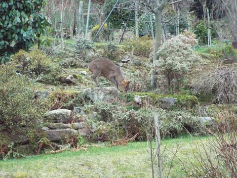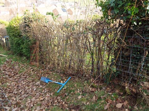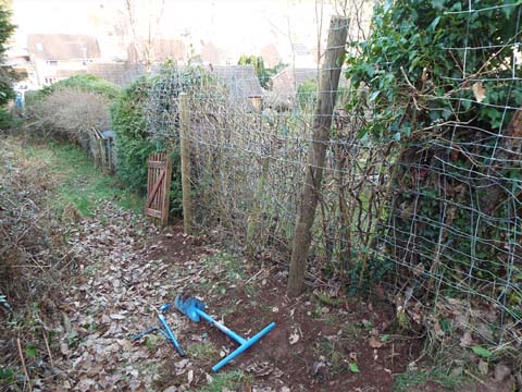 This page is part of a series of garden blogs from 2021. Click here for the index. And so life continued as the 'new normal'. The garden kept us busy and we regularly walked 'locally', eventually deciding we had to drive a (very) few miles first to get a change of scenery. It was time to look for help and I soon discovered a delightful small book produced by the local ramblers called 'Exploring Historic Dean' with descriptions of 14 walks in the Forest of Dean area which did just as the title suggested. By the time we had completed them we had a basic knowledge of that part which is administered by Forestry England (the former Forestry Commission). Throw in the local Ordnance Survey Explorer Map which we had bought on arrival (and its on line version courtesy of Bing Maps) and we were equipped to do for the FoD what we had done for the larger canvas that is Penang and that continued into 2021. Click on a picture for a larger version and click on that to return to this page. I woke up one morning in February and looked out of the window. There was a creature nibbling our rockery! It was the first muntjac I have seen in the Forest of Dean. They are quite a recent arrival, an introduced species which treats any garden it gets into in the way as a goat would, in other words they are an absolute menace. I don't know how this one got in or got out because it had vanished before I could get into the back garden. Two days later we had another visitor, a roe deer which I followed up the garden until it cleared a five foot fence at the top. It was time to take action, it was not going to be easy. It was soon clear that I would have to do it myself if I wanted to protect the garden in a timely manner as looking around I could see signs of where our visitors had been grazing. A few days later a set of fence poles arrived together with 25 metres of wire fencing. I guessed that the roe deer at least would come in from the top. The central part has a beech hedge which should act as a good deterrent as they can't see over it. To each side I dug two holes, inserted a pair of poles and attached two sections of wire, making the fence about two metres high which is at the low end of the recommended protection but about as much as I could manage. This shows the two sections in close up, the only practical way to do this was to use our neighbour's land and as she has always been, she was very sympathetic to my request. The side fence to the north was another matter. I've never met the owner and while the land has been rented out for grazing sheep off and on, for the last few years it has been abandoned and during the summer totally overgrown. Last autumn, rather foolishly as it turns out, I had reduced the height of this section of beech hedge so it would be easier to control. It will grow again no doubt, but I couldn't afford to wait. Fortunately, I had now stumbled on a 'post auger' which made the effort to prepare a hole much easier. It's basically a giant corkscrew, smaller versions are available but this was perfect for my posts. I just had to temper my enthusiasm and not try to remove too much soil each time it went in. Everywhere in and around our garden there are large stones, even rocks which are desperately difficult to extract with a spade. The auger was not perfect but it did loosen the worst offenders. The medium and small sized ones were actually excellent for wedging the posts in place afterwards. As you can see I was producing holes around one metre deep. I had also bought a fence tensioning tool but the poles weren't rigid enough to use it. The second picture on the right shows how I have increased the height of the fence which the roe deer cleared, the land falls away about two foot on either side, I suspect there may have been a small wall here many moons ago. After the sycamores came down I had added a section of fencing to our boundary with #35 but now it looked woefully inadequate, especially as their top fence is much lower than ours. There's nothing in their garden or 37's for the deer to eat except grass so unilateral action was required. Finally in mid-April, we combined a May Hill walk, a garden centre session and a visit to the fencing people in Huntley and in almost no time, the job was complete. I have tried to leave a gap next to the bonfire area which while not an obvious entry point is likely to be an attractive exit point. The fencing posts have not been treated, that gives them a maximum life of about 10 years by which time I guess I'll have no choice but to pay someone to do it all again... Click here for the next part. |