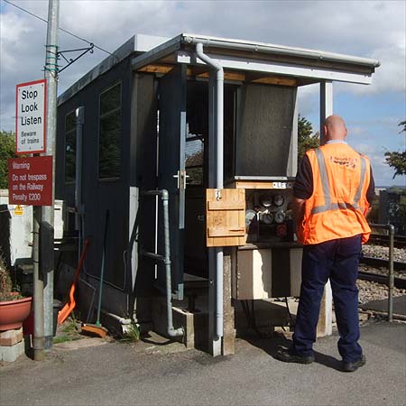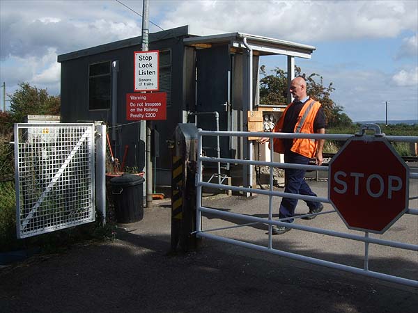 Once upon a time, the railways of the UK sported any number of manually controlled level crossings, now the number is diminishing fast and I understand that this and St. Mary's (http://en.wikipedia.org/wiki/St_Mary's_Crossing_Halt_railway_station) in the Stroud Valley are the last of their breed in Gloucestershire.