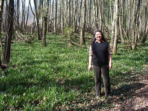 For convenience I have now grouped lifestyle illustrated features by topic: This page is just one of several describing aspects of our '2012 new life', for earlier and later pages use the West Gloucestershire link above. "March Winds and April Showers bring forth May Flowers." Generalisations about the British weather are dangerous, and 2012 was no exception. Returning from Penang in early March, we were greeted by what was effectively a heat wave. April's showers were of the continuous variety but eventually the promised the May flowers were indeed. As recorded elsewhere, there is nothing like a visit to a garden centre to prod Yuehong into action and this page compares identical Spring walks made some 6 weeks apart - separated by what seemed like almost continuous rain. Hobb's Quarry is a local SSSI (Site of Special Scientific Interest) and Nature Reserve; a good footpath leads off near the crest of the hill opposite the Baptist Church in Little London. There are views down to Longope and across to the Forest of Dean to the West. In March the wood anemones were splendid and just a few bluebells were poking their heads up:
