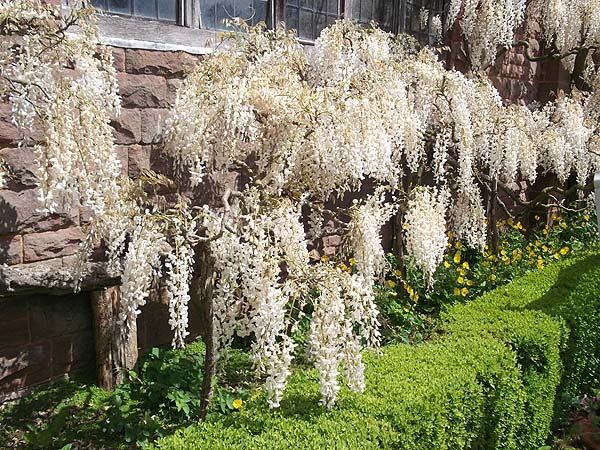 It was plain that the gardens, like ours, were running well behind their normal schedule. As a result, the wisteria was in full bloom, this was the white variety on the south wing: