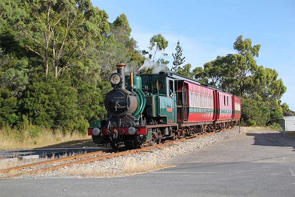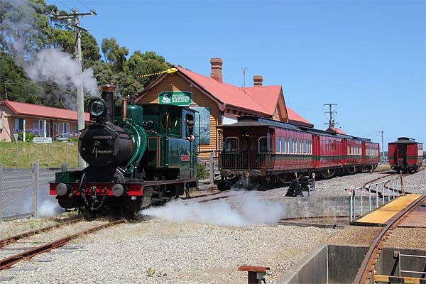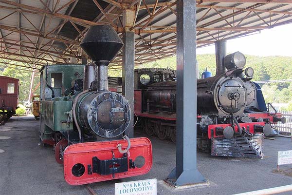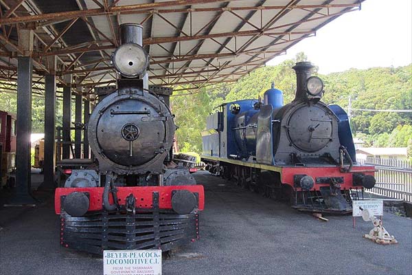 This report covers the West Coast Wilderness Railway and the West Coast Pioneers Museum, Zeehan: "Quite a lot has happened since James wrote his piece on the railway in 2013: Thankfully it is running again over its full length, There are trains which do half of the line, from either Strahan or Queenstown to Dubbil Barrill and, on some days, the whole line from Strahan to Queenstown and back. Best to check the website for details - http://www.wcwr.com.au/. (Be advised that the fares of ca GBP 50 and GBP 100 for Heritage Class / Wilderness Class for a return trip on half the line reflect the cost of maintaining the operation. RD) A tip for intending visitors, pay the extra for first class, this coach has an open balcony which is at the back one way and behind the engine the other, otherwise you are trapped in a coach with no opening windows. It's advisable to pre-book your tickets since this sells out. An American style "safety culture" seems to have been implemented and passengers are constantly instructed on what and what not to do. An extensive commentary is given, which may be appreciated by "normal" tourists but is very irritating when you are trying to video. The steam guys are, however, very friendly and true enthusiasts. Nigel Day, unfortunately, is not there anymore, but he got me an introduction which lead to a depot visit and a footplate ride. Surprisingly, there is quite regular goods traffic for the forestry works on the Strahan end of the line. These are worked by one of the Drewry diesels. We were very lucky to catch all three locomotives in steam on one day (no 3 was on test after repairs and double headed our train). Queenstown station had the atmosphere of a London suburban terminus with two trains in and shunting taking place. It is a marvellous and unique line which must be preserved. A visit is highly recommended."