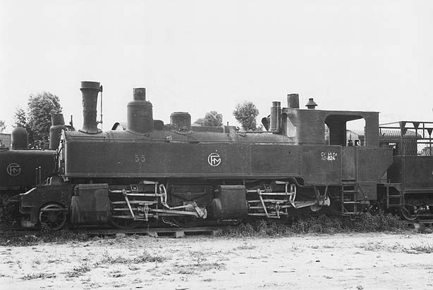 40-824 (formerly 55) was bought second hand from the Rhätische Bahn in Switzerland when it was electrified (a 2-8-0 from this railway is also shown in Thailand in