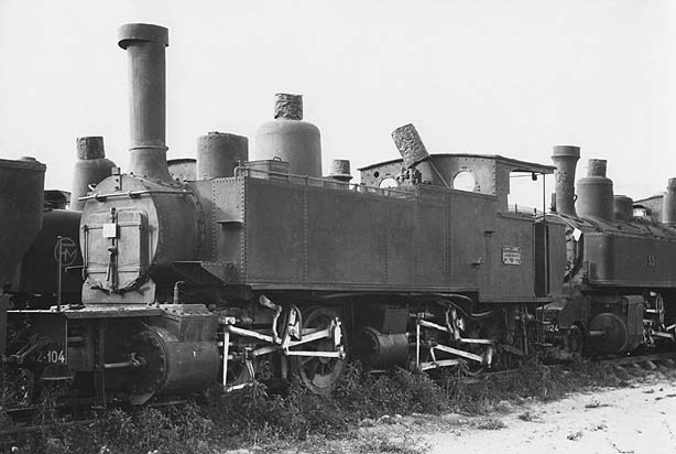 42-104 was one of a further early series of 0-4-4-0T Mallets built by Batignolles (1906). This one started out on the Bône-Guelma Railway in the Mahgreb in North Africa.