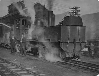 The first, K1 T.G.R. Garratt locomotive "K" class No. 1(BP 5292/1909) at the Tasmanian Smelting Company works near Zeehan on the West Coast of Tasmania in the early 1920s. Note the dual gauge track of 2ft and 3ft 6in gauges.