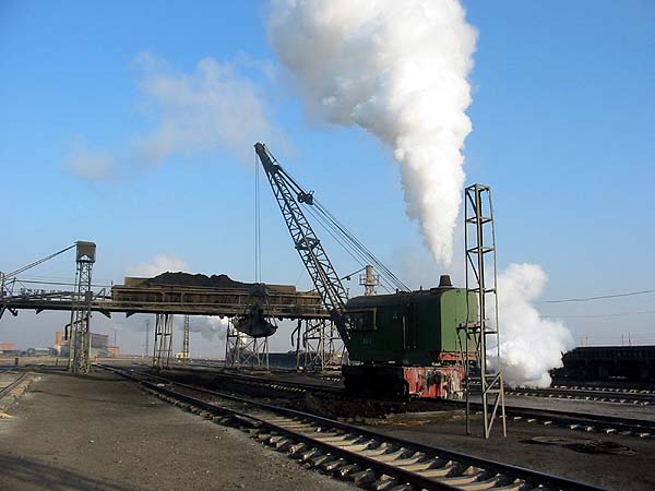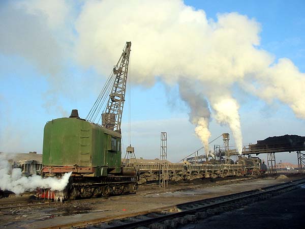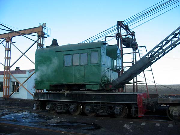 At the coal transfer shed and servicing point at Dongfanghong is another crane used for steam locomotive coal but also for clearing away the ash (which here is very dusty):