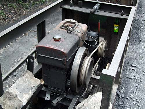 After which the boss decided I had done enough photography, so we walked on finding the end of a 600mm gauge tramway clearly used for shipping out coal. In June the water level has been deliberately lowered in anticipation of the summer rains so it would not have been easy to ship out at the moment. Walking on we found the home made motive power under the coal loader: