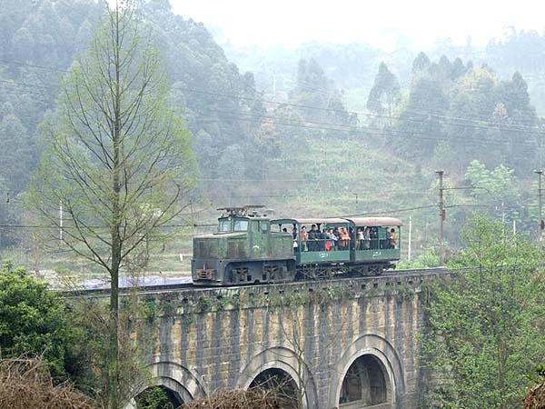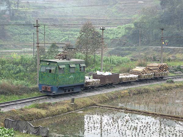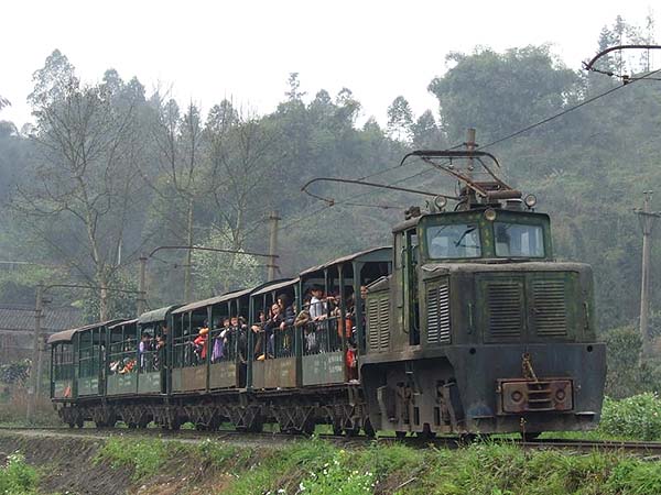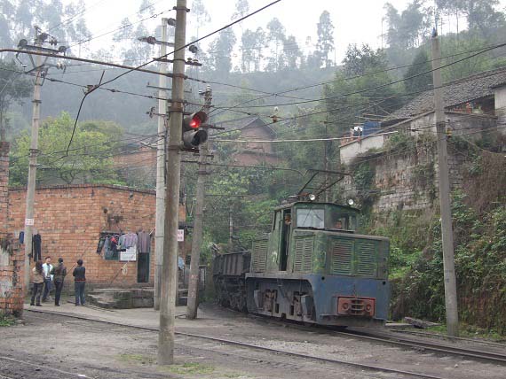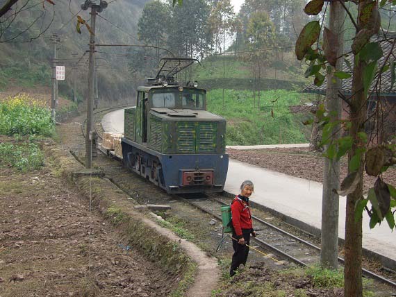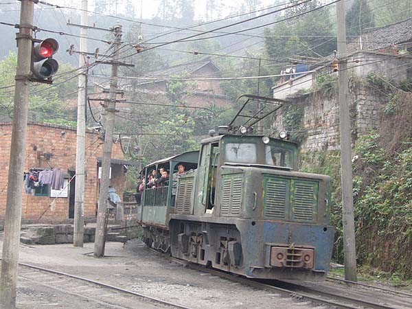 Wilson Lythgoe reports on his visit to the Mojiang Coal Railway, Shawan, Sichuan Province in March 2011. With less and less steam in China I find I'm taking more of an interest in some of the other 'quaint' railway operations. The Mojiang Coal Railway was certainly one of these when I visited it on the last day of March this year. Narrow gauge: electric: a passenger service: it had all the makings of an interesting place but there was one snag...... recently the railway had developed a reputation of being less than friendly to "foreign friends". Emails to the author of a recent report on SY Country revealed his party, accompanied by a Chinese guide, had difficulties getting a hotel in town and after being allowed onto the railway had later been asked to leave by security. I arrived at Shawan, by train, late afternoon and took a taxi to a hotel where I too was refused a bed. Next I was taken to the three star Tian Quan Hu Hotel where for 160Y a night I got a well appointed, but slightly shabby room. The starting price was twice that but I think I was being pushed in the direction of a suite! Still a good bed, plenty of hot water, no road noise and that Chinese highlight: a good buffet breakfast. Next morning I took another taxi to the railway. The driver drove straight through the security gate at the entrance to the village/industrial complex and took me right up to the railway and its passenger platform. I got out and trying to keep a low profile headed immediately for the tunnel immediately beyond the station. Within half an hour two trains arrived: the first a coal train, the only one I saw that day, and the second a passenger service. So far people had been quite friendly, lots of waves and hello's but I was not acknowledged at all by the driver of the passenger. (In fact he ignored me all day!) Soon after security arrived and I was 'waved' away. I went to follow the locals walking through the tunnel and motioned to ask if this was OK......the guy had no problem with this, he just seemed to want me off his patch so into the tunnel I went. The rest of the day was spent just beyond the tunnel, where the line splits into two branches: one going the three kilometres to Laokuang and the other twelve kilometres to Xiangjangzhan.