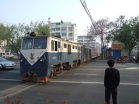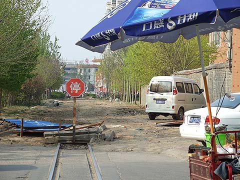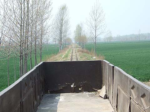 Wilson Lythgoe reports on his visit to this diesel powered narrow gauge railway in Henan Province, China in April 2011. Paul Crooks reports (30th August 2012) that the railway has now CLOSED. See pictures below. The YuDan Narrow Gauge Line was last mentioned in SY Country back in November 2007. At that time it had a daily passenger train said to be the farthest one can travel by ng in China and a number of freight trains. All diesel of course.... Then early this year, purely by chance, I found an internet report by some Chinese Railfans of a visit to Xuchang in October last year and it seemed as if the railway was still operational and passenger train running. As an added bonus this report had a picture of the railway station with a sign above it that translated to 'Small Train Station' and with that in my possession all the hard work was done! I worked out by flying from Chengdu to Zhengzhou, rather than taking the train, I could gain the day and a half I needed to visit the railway and possibly ride the passenger. Zhengzhou Airport appeared to be midway between Zhengzhou and Xuchang with a regular bus service to Xuchang so that was a plus. Xuchang being the only major city on the railway and where I presumed the where the main depot to be. So having settled into a hotel near the China Rail station mid afternoon I got a cab to the 'Small Train Station'. The picture off the www worked a treat. The station turned out to be only a ten minute walk from my hotel so this was the last time I needed a taxi in Xuchang. On arrival the situation did not look promising.....sure there was a station and tracks but no one was around and it all looked very desolate. There was a very faded poster on the wall though showing train 101 would leave Xuchang at 07.00 arriving Dancheng at 1300. Train 104 would depart on the return trip an hour later arriving back at Xuchang at 20.00 but there was really no sign that the railway was operating at all. I spent the rest of the afternoon inspecting the station yard and nosing around the depot area. The yard contained a row of battered 'Huanan' style coal wagons, a carriage that looked as if it had been in an argument with a truck and a railcar probably belonging to the track maintenance gang. Hooked behind the railcar was a flat wagon with some garden benches on it....maybe the makings of a tourist train? According to the maps and information I had, back in 2007, freight traffic was originating from anything up to 70 kilometres west of Xuchang and then passing through Xuchang on its way east. Now the railway had been pulled up immediately to the west of the station. The next block along had already been converted into car parking and beyond that empty ballast curved away into the distance between apartment buildings.