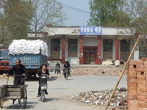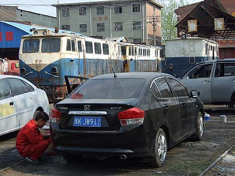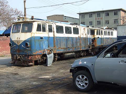In the other direction towards Dancheng the track was still in situ and I found what was obviously the loco depot. A number of diesels stood outside in an area that seemed to be part of a panel beaters yard. Behind that a number of locked sheds where I was able to peer through cracks in the doors. All up I reckon there was fourteen engines around the place with none looking as if they would be operational and still I hadn't seen anyone who looked as if they worked for the railway.