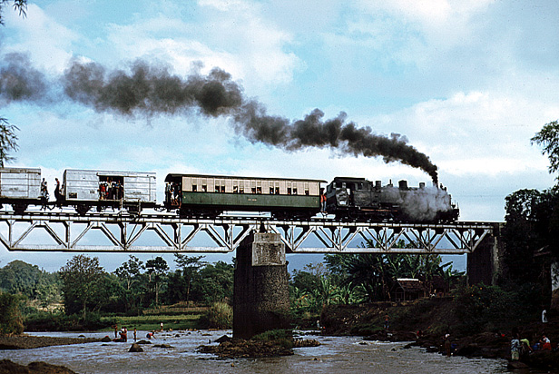 By now the sun is up, and the CC10 struggles across the bridge at Garut with another two hours of climb ahead, 6th July 1980. (KC)