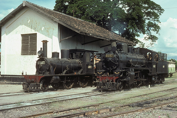 Two generations of express passenger power are represented by B5007 and B5307 at Ponorogo on 20th April 1977. Either alone would have been a remarkable survivor, the pair almost unbelievable! (RD) |