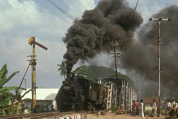 My own visits to the Labuan line in 1976 and 1977 were blighted by cloudy weather. In August 1977, later in the dry season, Derek Huntriss did much better starting with B5132 powering out of Rangkesbetung with the afternoon departure. (DH) |