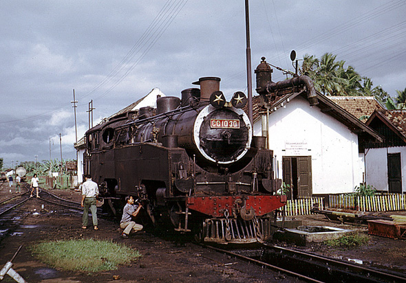 CC1030 is one of the small final batch of CC10s which were distinctively different from the earlier batch with their sloping tank fronts. It was photographed getting ready for its next turn at Cibatu on 31st March 1974. (CH) |