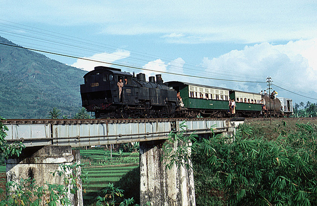 C1007 approaches Cibatu on a return working from Garut in July 1980. CC10s were so 'leaky' that the only safe way to photograph them was when they were coasting like this. (JT) |