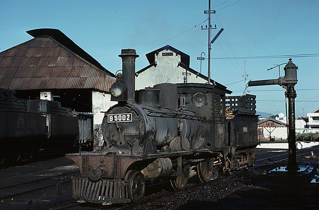 B5002 takes water on Madiun shed, 5th September 1978. Although heavily rebuilt in the 1920s with new boilers, these locos epitomised the attraction of Java to those looking for British Victorian era elegance. (NT) |