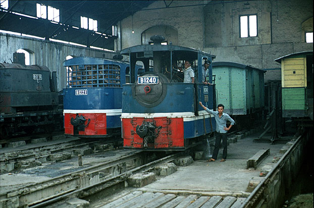 Inside Wonokromo shed in July 1973. At this point B1221 and B1240 had just been repainted blue, while B1238 is still in black and probably bound for the wagon works at Surabaya Gubeng which seems to have done most of the overhauls on the B12s. (JT) |