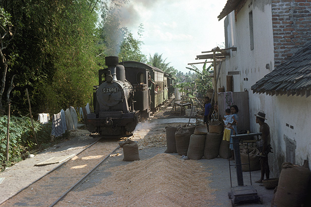This was my first visit and although I didn't realise it at the time, C2606 was first choice loco for the Pare to Kediri service for several years. Having taken water, it pulls away to rejoin the road it followed for virtually the whole of its journey on 6th August 1975. (RD) |