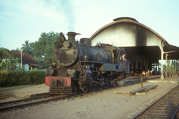 I know of no other pictures showing the Purworejo branch. The quality of accommodation at Kutarjo was such that an early start was quite welcome, but C2725 reached its destination before the sun rose and photography was only possible as it ran round its short train.(RD) |
