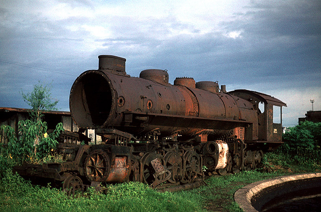 Java always boasted more than its fair share of wrecks. This one at Sidotopo on 6th May 1973 appears to be the remains of a DD51 2-8-8-0 Mallet. (PM) |