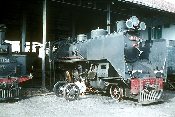 Few enthusiasts went here in 'the early days' and it seems that Tony Ford got no further than Tanjungkarang in around 1971. There was precious little that couldn't be seen on Java. C1134 and F5031 were on shed there. (TF) |
