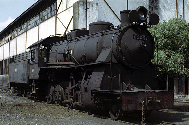 D5051 was stored out of use at Tanjungenim in March 1983. It is unlikely it ever worked again as all the main line steam locomotives were out of use by the time I visited a year later. (IS) |