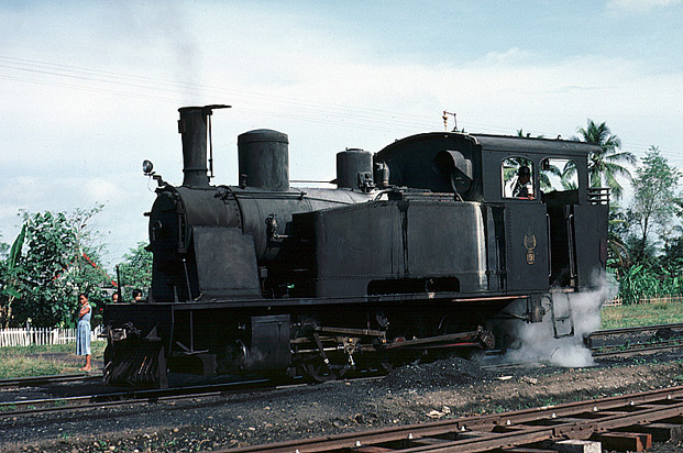 The DuCroo and Brauns 0-6-0T were delivered in two batches, but by the time of my visit only the post Second War locomotives were still active. This is 9 at Kertapati in August 1984. (RD) |