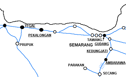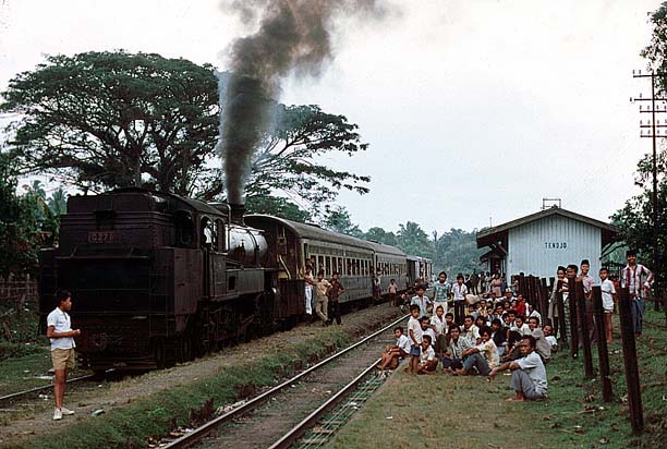 It was impossible to decline my host's jackfruit dinner and no doubt I slipped away as soon as I could to catch up on my sleep. 30th May 1976 This was yet another day with a pre-dawn start. Unfortunately, Tegal's locoshed is/was some way north of the station on the (erstwhile) harbour branch, so I had a long trudge in the dark. First light must have been somewhere around Slawi and I remember arranging an impromptu false departure with B5220 at one of the small stations where the alighting passengers stayed on the platform to look on in amazement.